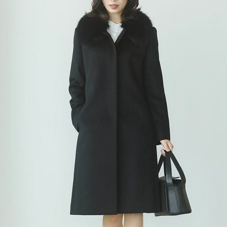 | 商品名:カシミヤ 100% コート フォックス 襟付き 比翼仕立て ミドル丈 |