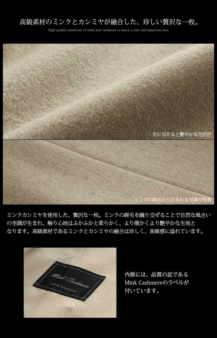 高級素材であるミンクカシミヤを全面に使用した、高級感溢れるロングコート。