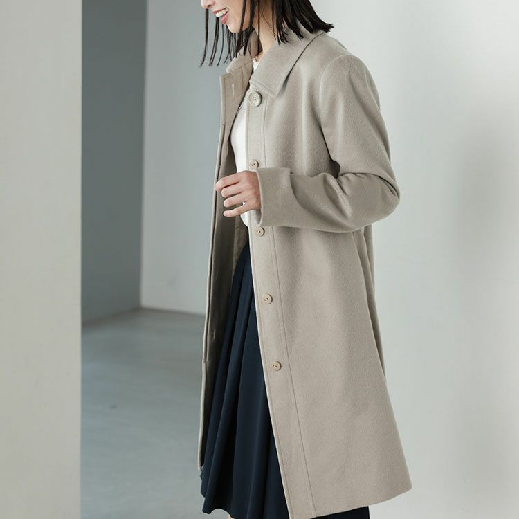 ベーシックなデザインで使いやすい、カシミヤ100%のステンカラーコート。