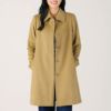 前開きは比翼仕立てで、一番上のボタン以外は表からは見えず、すっきりした印象の残るコートです。