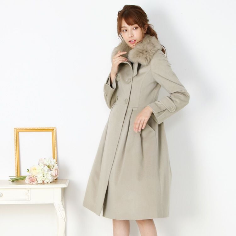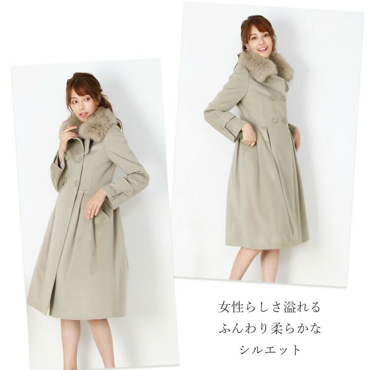 | 商品名:Filomo/フィローモ カシミヤ 100% コート フォックス ファー 付き ロング ダブル 秋冬 レディース グレージュ/ライトグレー/ブラック |