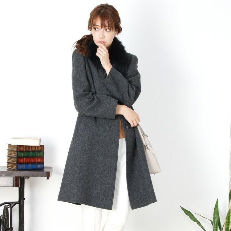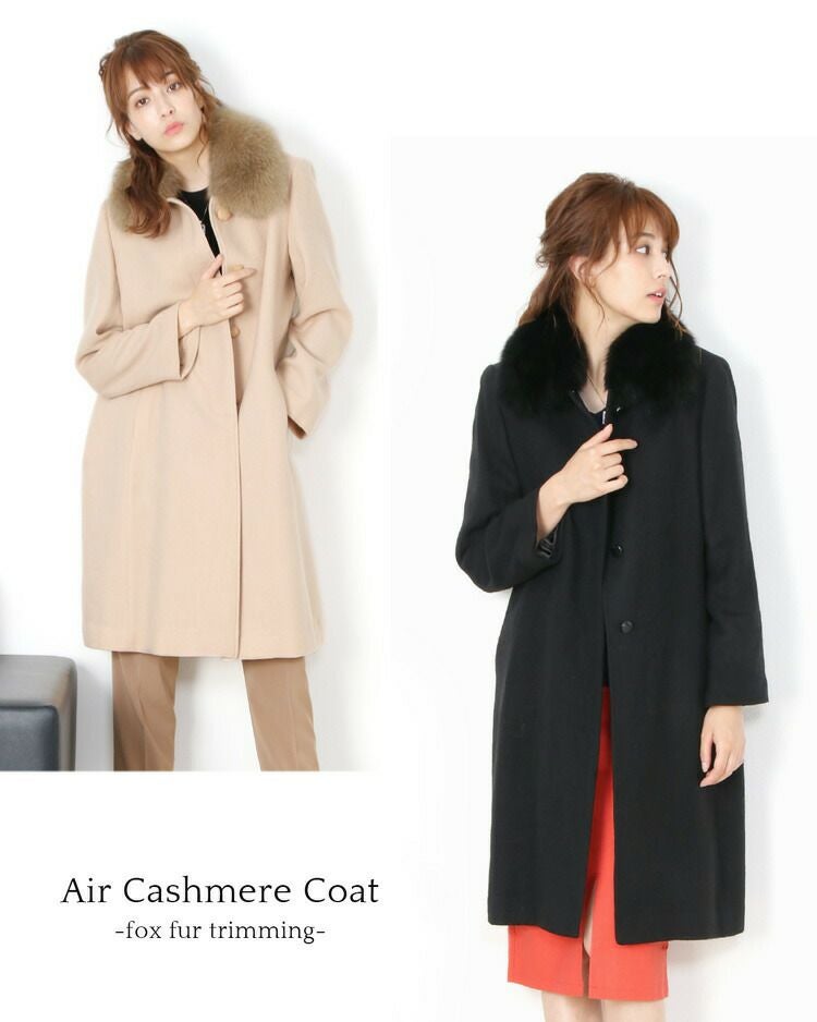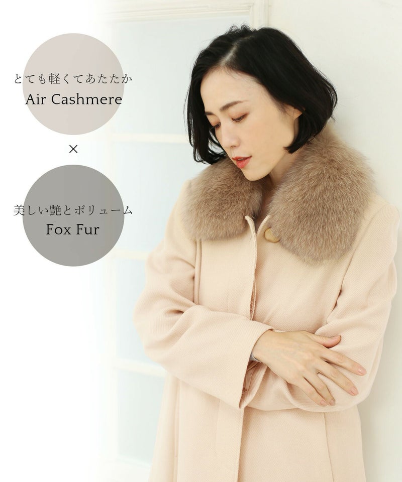 日本製 エアー カシミヤ 100% ロング コート フォックス ファー トリミング ステンカラー 比翼仕立て 撥水 加工 秋冬 レディース ZF