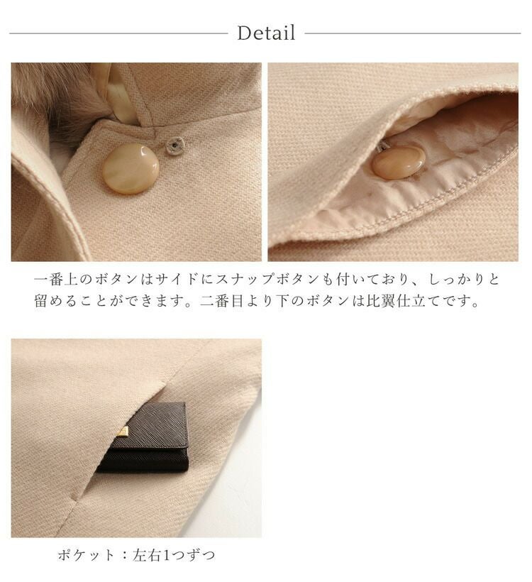 | 素材 | 表地:カシミヤ100% 裏地:キュプラ 毛皮:フォックス |