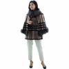 カシミヤ ケープ コート タータン チェック シルバー フォックス ファー トリミング ベスト 比翼 レディース 7F (02000101r)