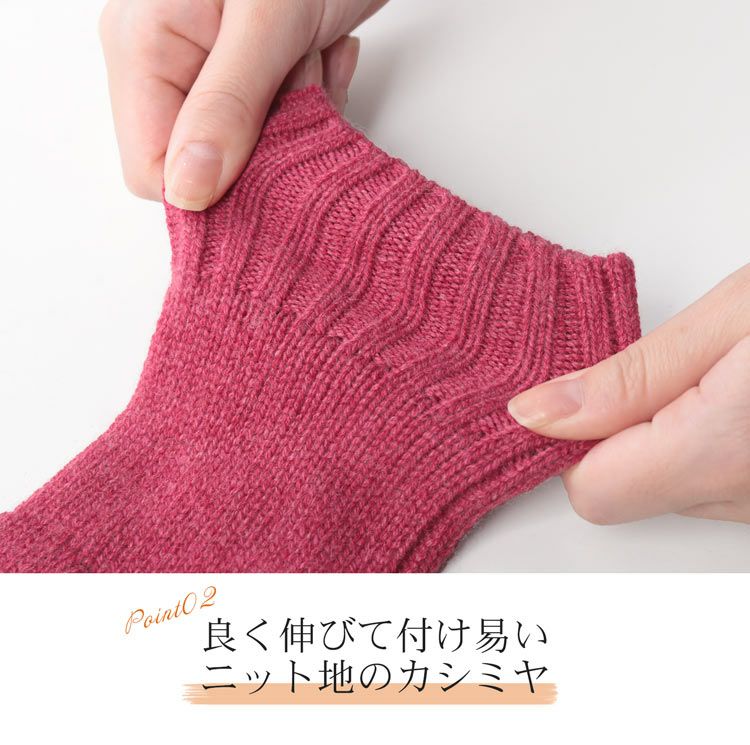 カシミヤ100%素材を使用した、軽くて暖かい指ぬき手袋。