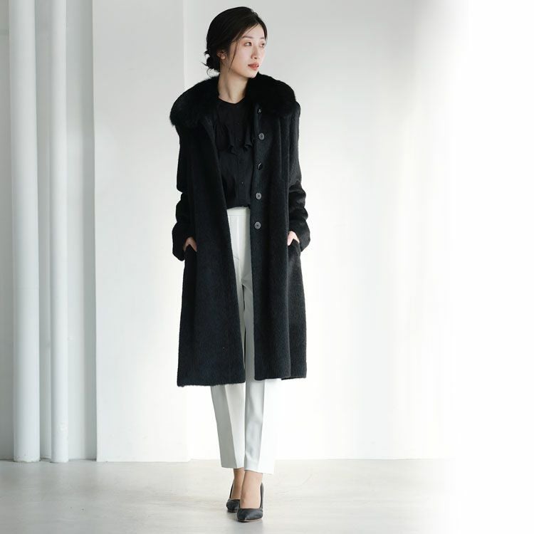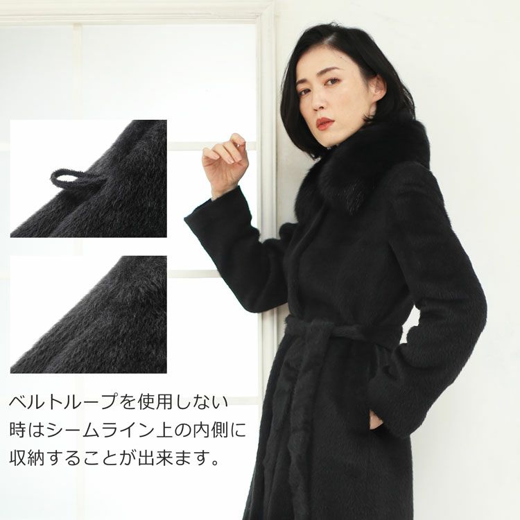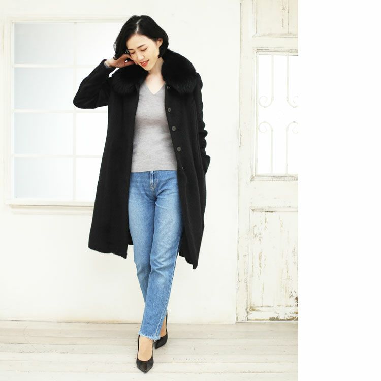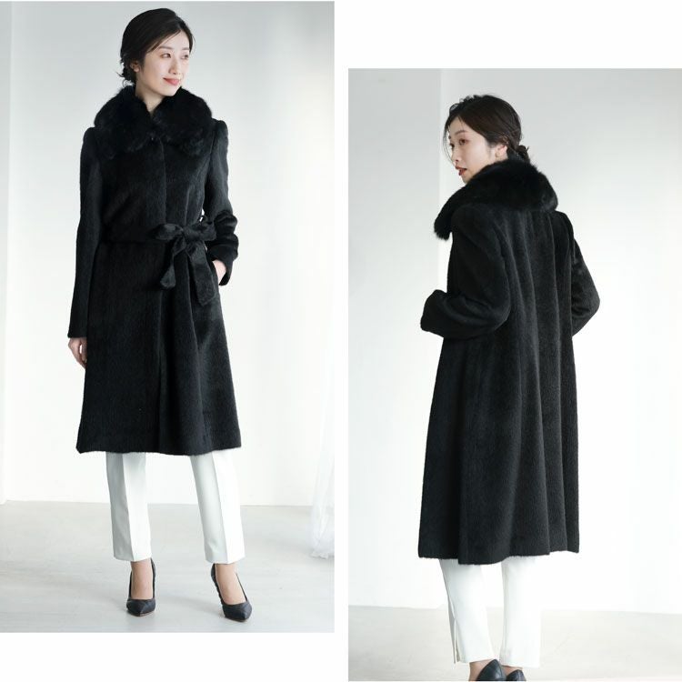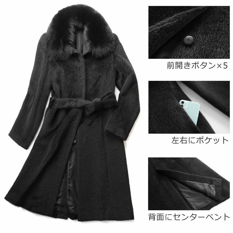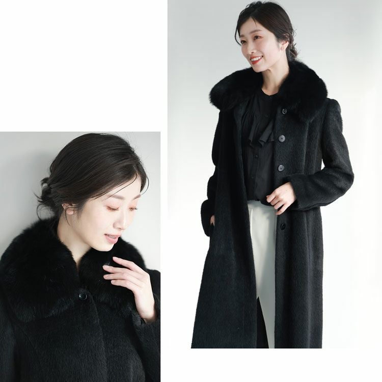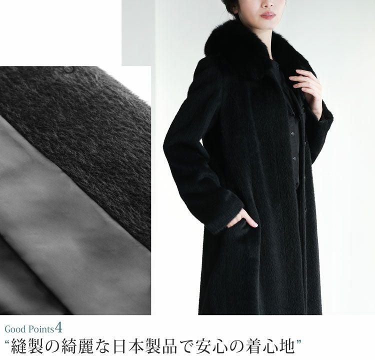 | 商品名:ロングコート レディース スーリーアルパカ フォックス 襟付き 日本製 比翼仕立て 9号/11号/13号 ブラック |