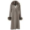 ロングコート タスマニアリバーウール フォックスファー付き テーラーカラー 着丈106cm レディース 日本製 レッド/モカ/グレー 9号/11号 6F