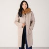 | 商品名:Filomo [フィローモ] ウール リバーシブル コート フォックス ファー トリミング ダブルフェイス 着丈98cm 秋冬 レディース ベージュ/ネイビー |