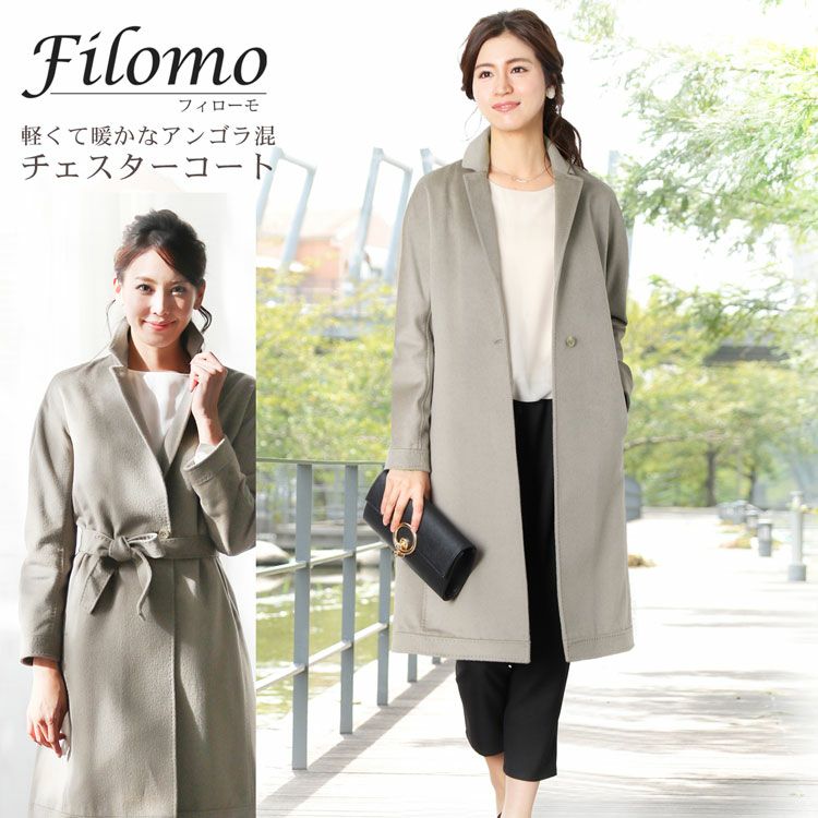 Filomo アンゴラ ウール チェスターコート ベルト付き 99cm丈 レディース 秋 冬 アウター アンゴラコート ウール チェスター ロングコート 春 30代 40代 50代 60代 ギフト プレゼント