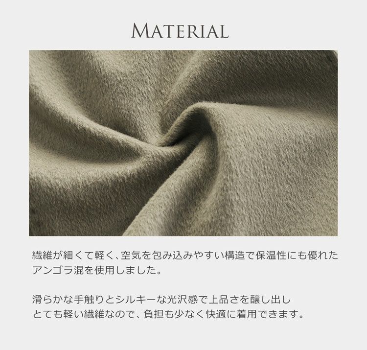 | 素材 | 表地: アンゴラ75%、毛25% 裏地 : ポリエステル100% |