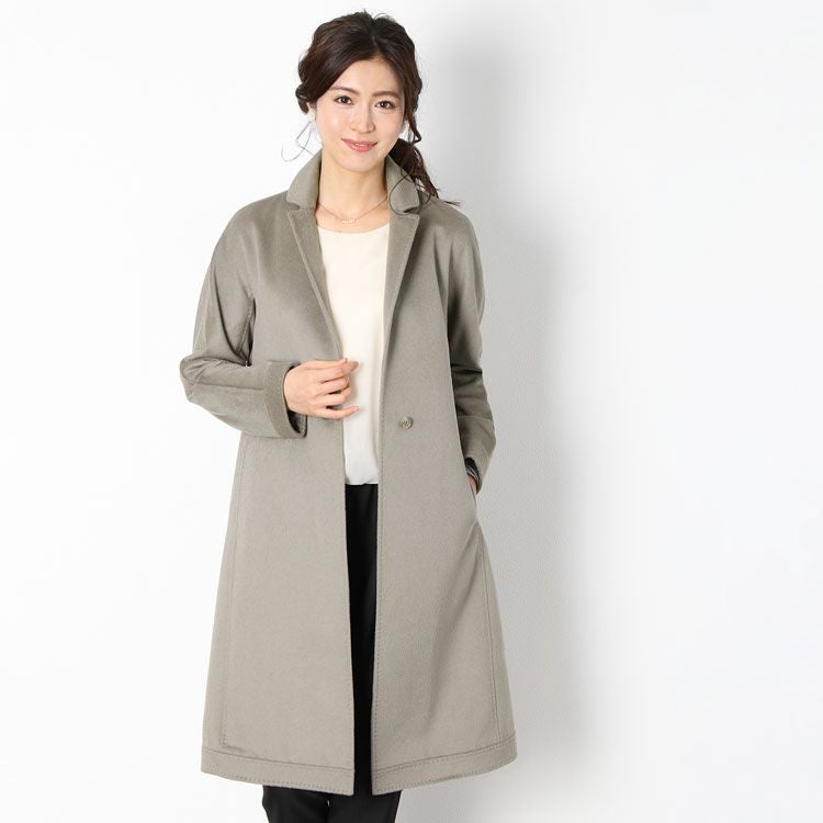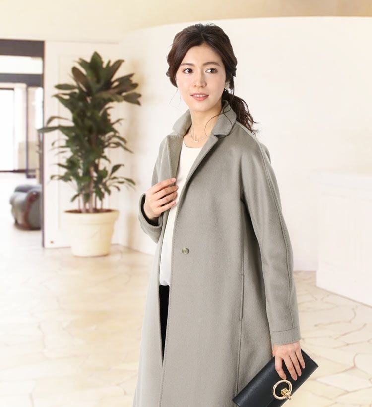 上品なAラインシルエットに落ち着いたグレーカラーのチェスターコート。