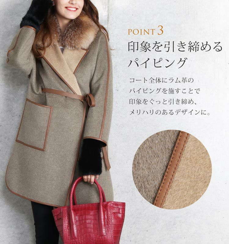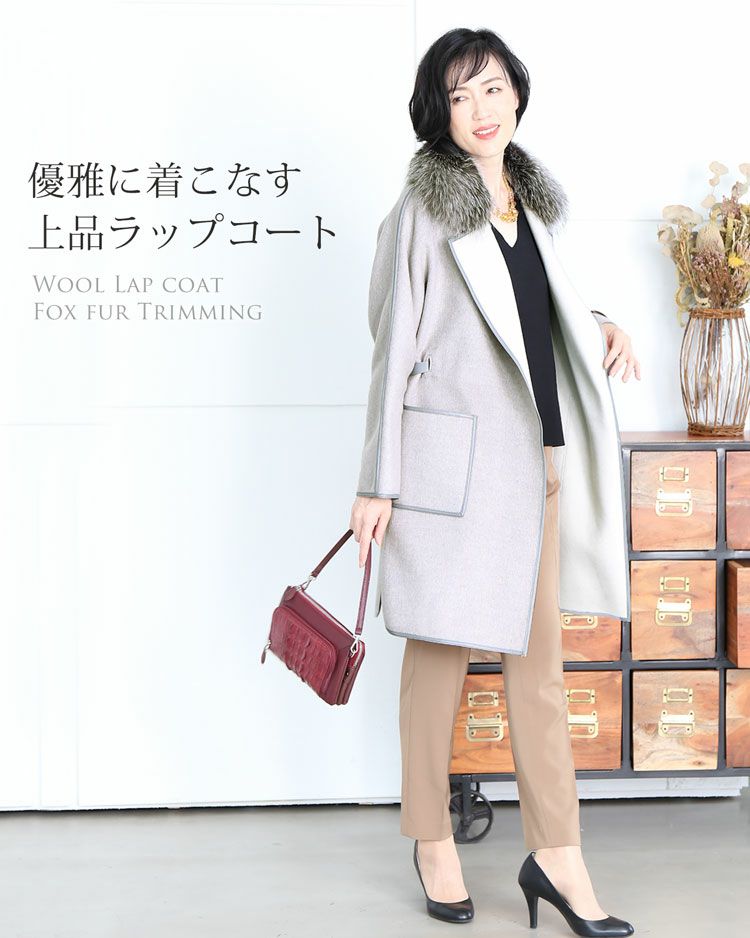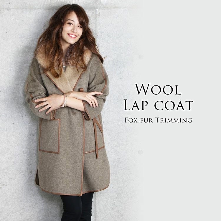 | 商品名:ウール 一枚仕立て ラップコート フォックス襟 ラム パイピング |