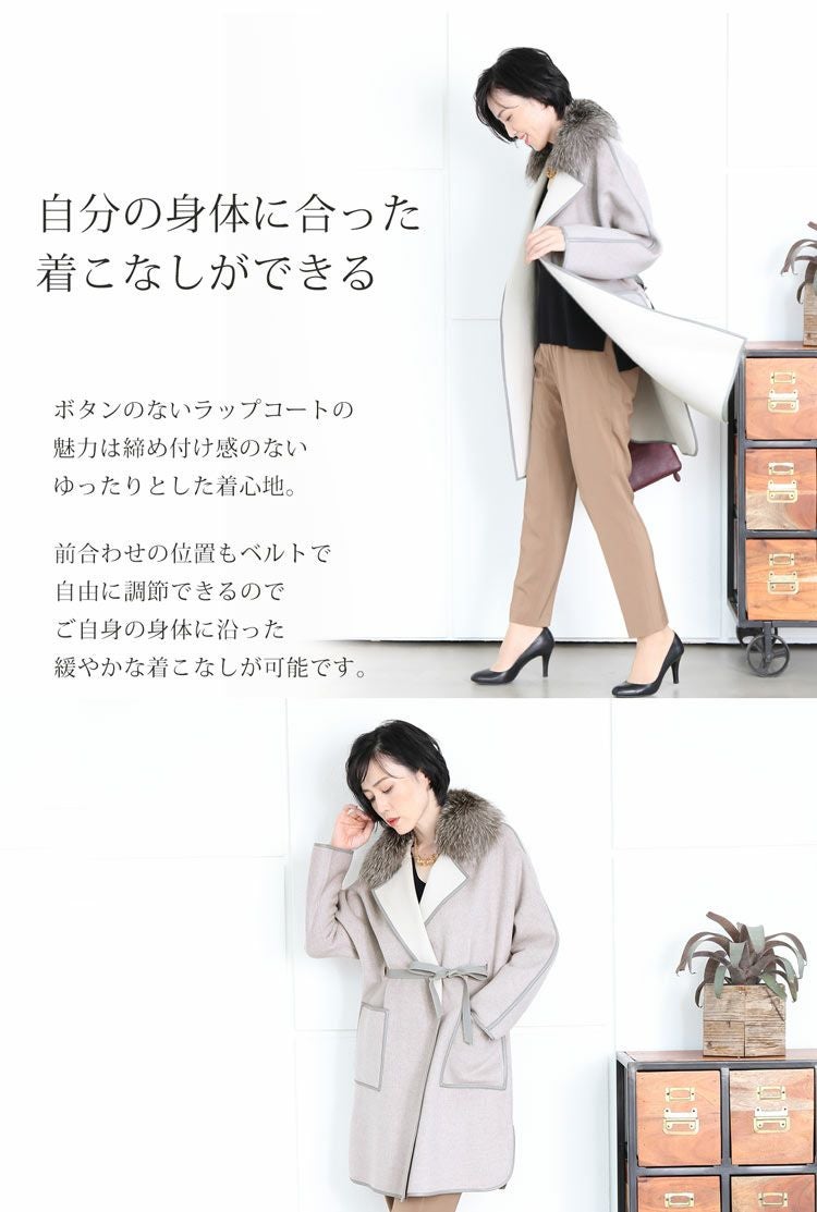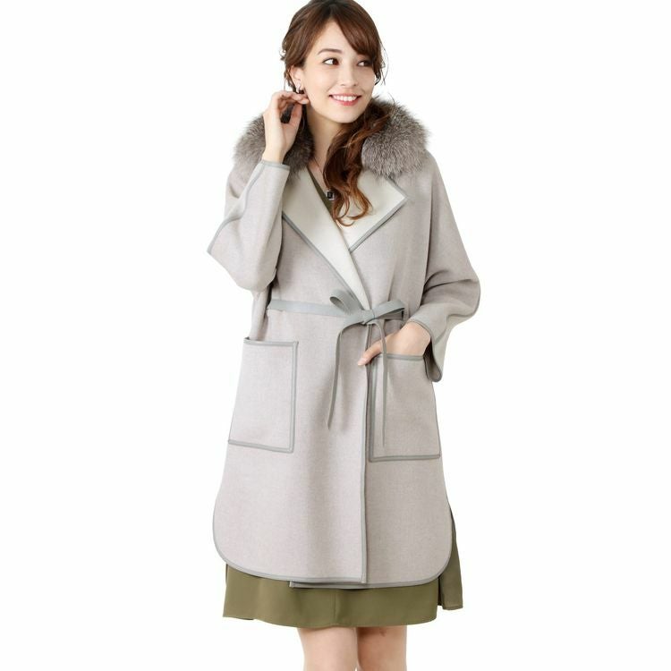Filomo ウール ラップコート フォックス襟 ラム パイピング 一枚仕立て 7F