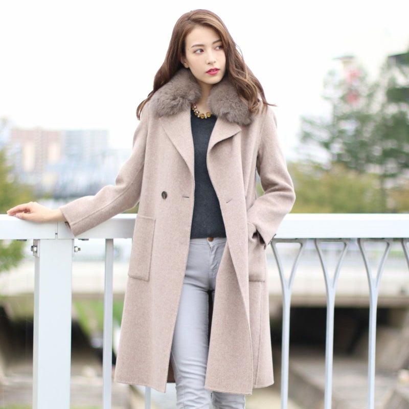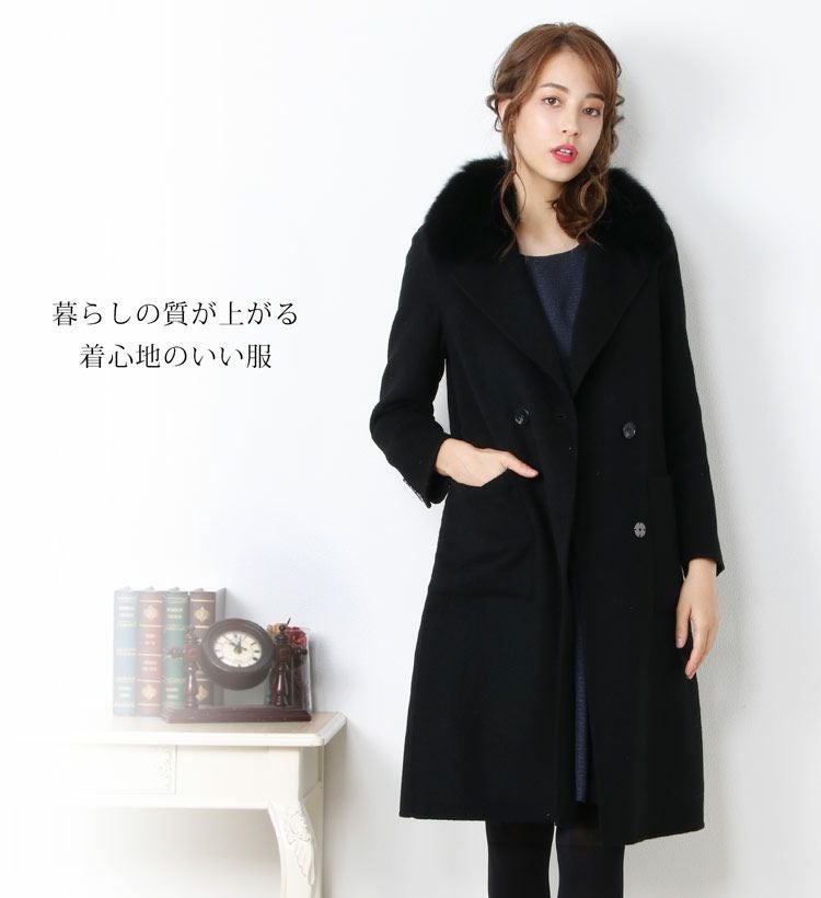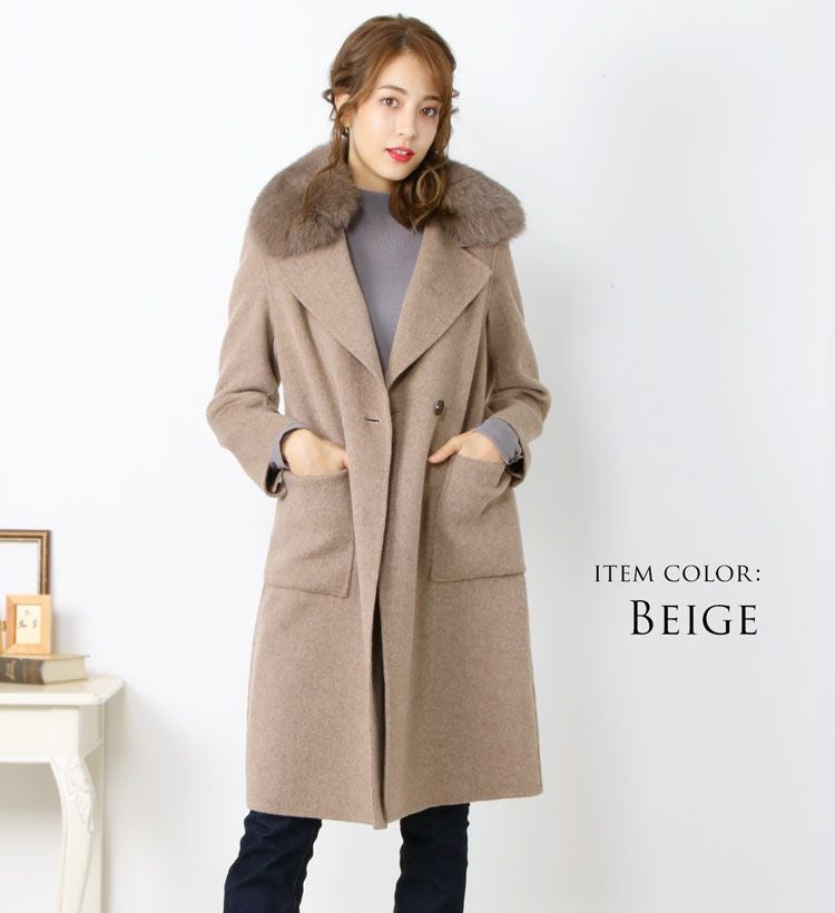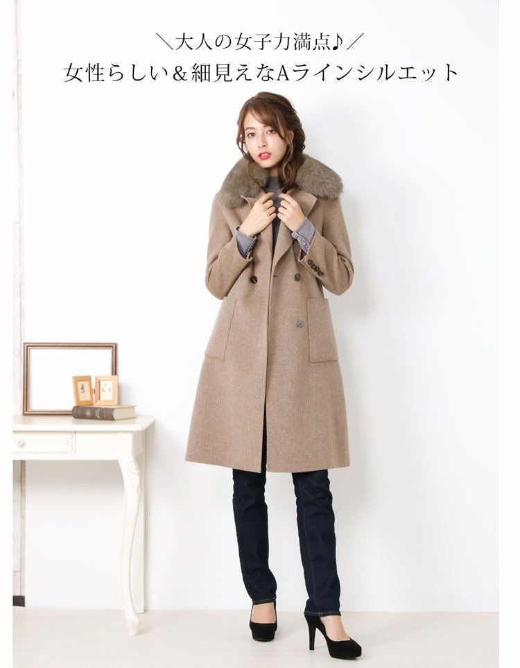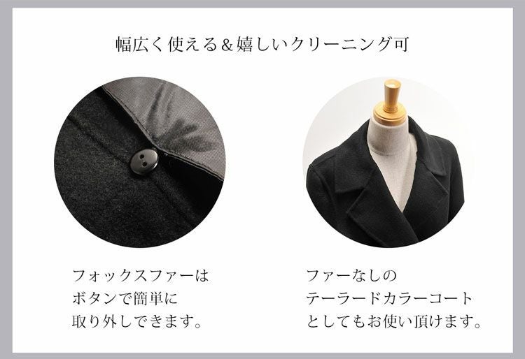 ウールコート テーラードカラー 取り外し可能ファー付き 6F