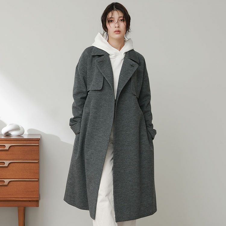 柔らかく着心地の良い日本製のジャージニットで仕立てたロングコートです。