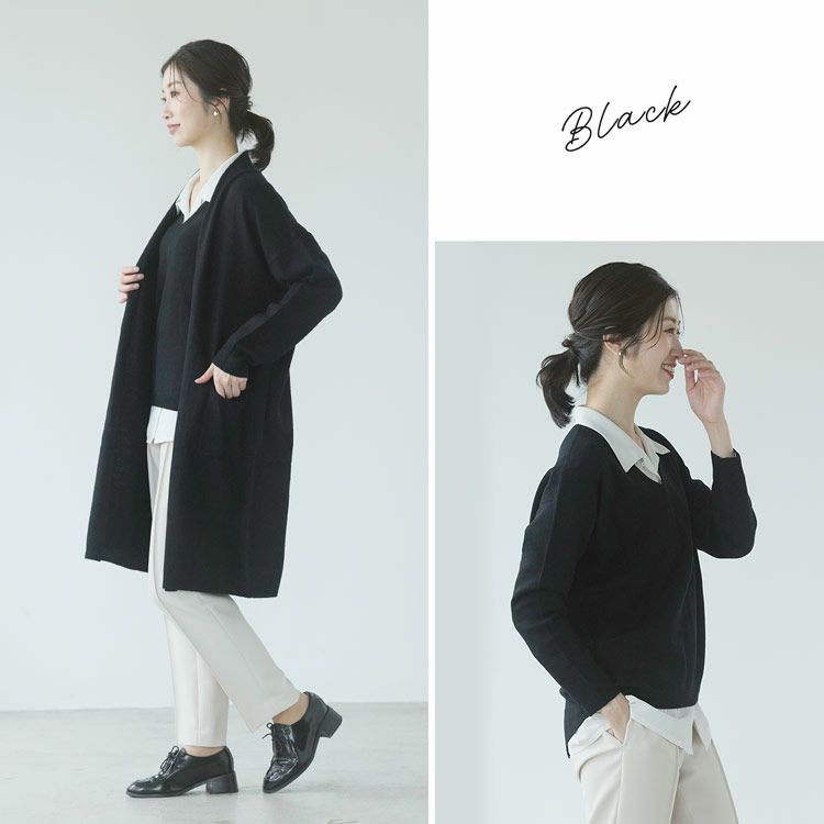 カーディガンはおしりが隠れる着丈で羽織るだけで体型カバーしてくれます。
