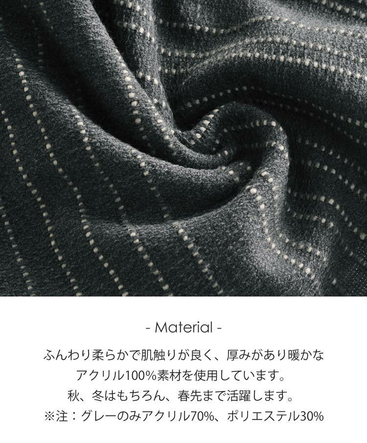 ふんわり柔らかで肌触りが良く、しっかりと厚みがあり暖かなアクリル100%素材を使用。