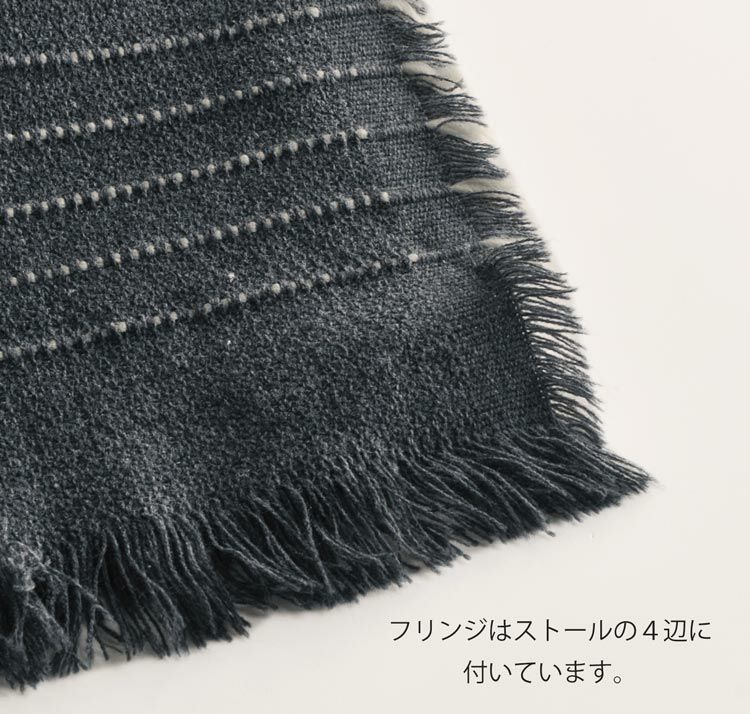 ストールの4辺には動きを与えてくれるフリンジが付いています。
