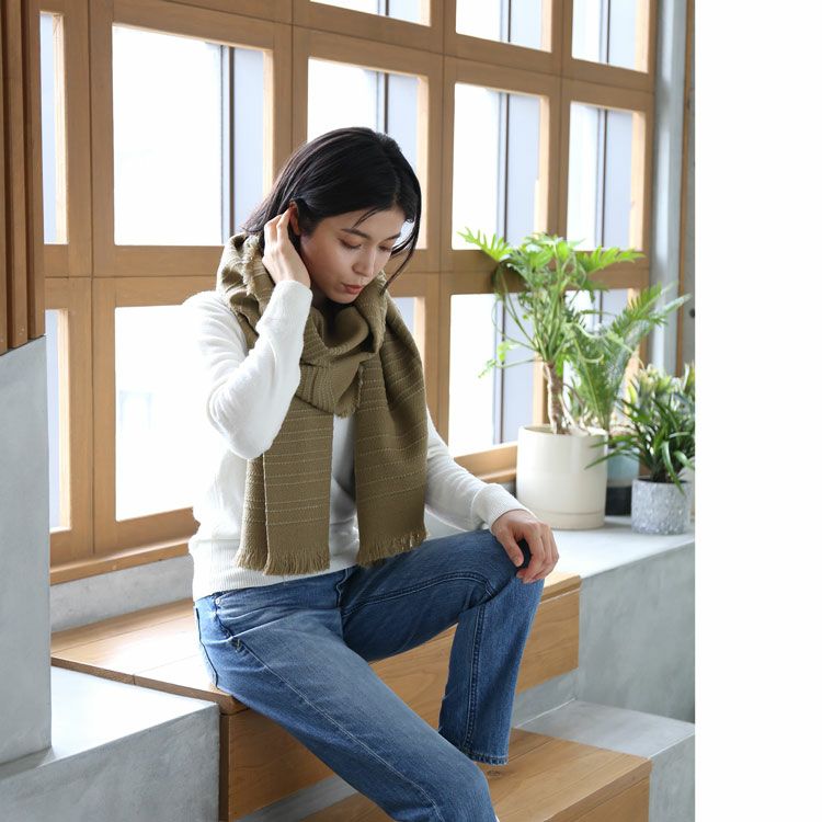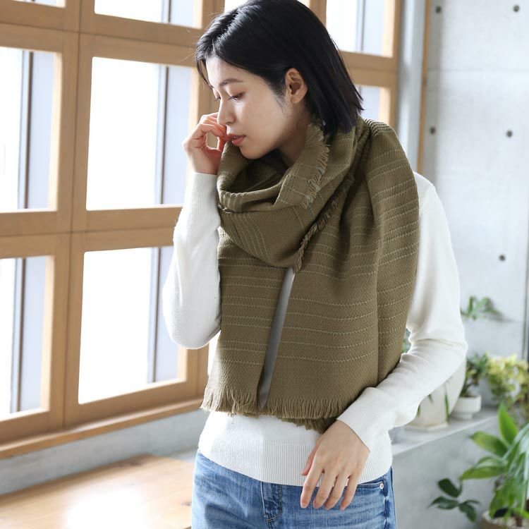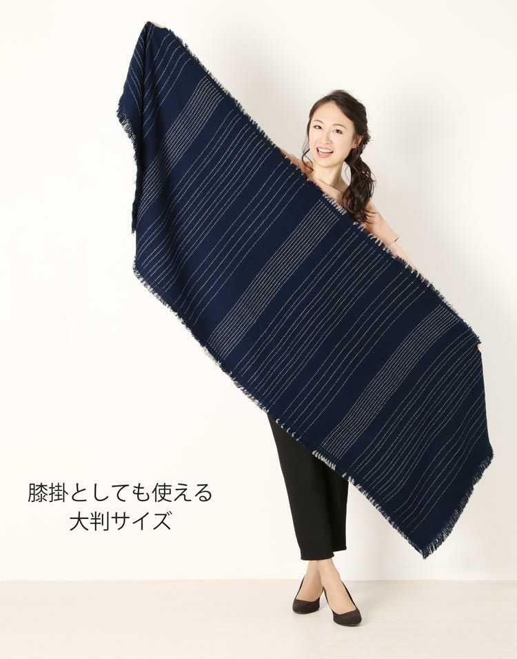 手縫いステッチ風なデザインでカジュアルな雰囲気を楽しめるストール。