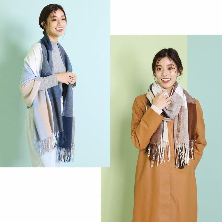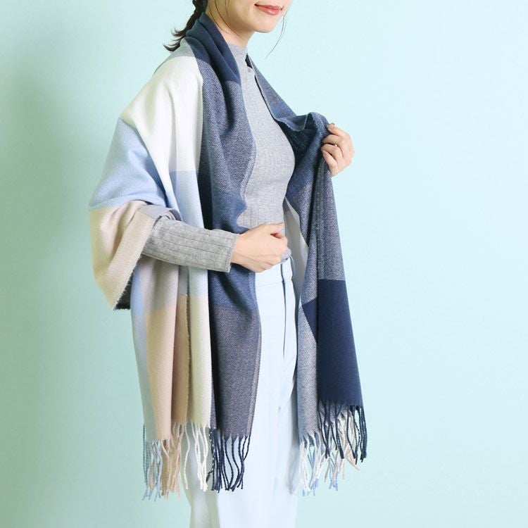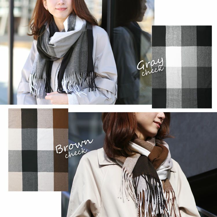 ふんわり カシミヤタッチ 大判 ストール チェック プチプラ 【ネコポスで送料無料】 7F (08000255r)
