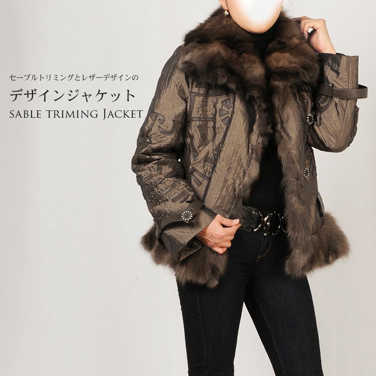 セーブル トリミング ジャケット レザーデザイン ベルト付き 7F