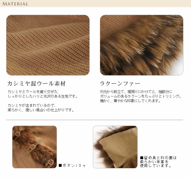 他の画像を見る クーポンで10%OFF ロングコート カシゴラ フォックスファー付き 着丈87cm レディース 日本製 ベージュ/キャメル/ブラック 9号/11号/13号 6F ¥ 63,800 税込 (0件) お気に入りに登録する