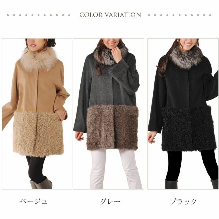 カシミヤ混&カルガンラム コート リアルファー衿付き(No.01000368) |
