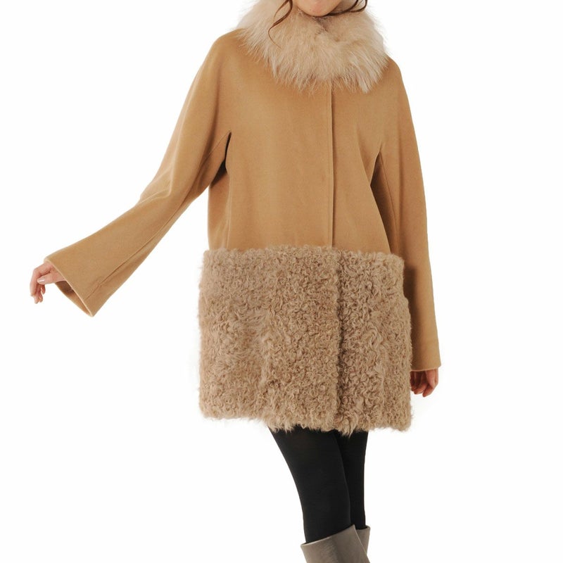 カシミヤ混&カルガンラム コート リアルファー衿付き 7F