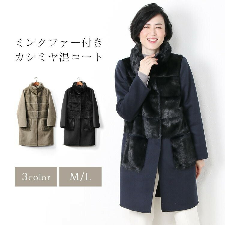 ミンク & カシミヤ 混 ウール コート 一枚仕立て/Aライン/レディース 毛皮 ミンクコート ファーコート カシミヤコート アウター 秋 冬 30代 40代 50代 ギフト プレゼント ギフト
