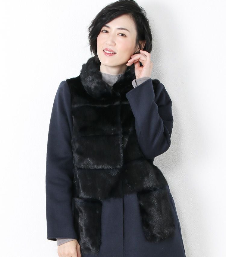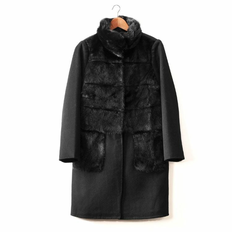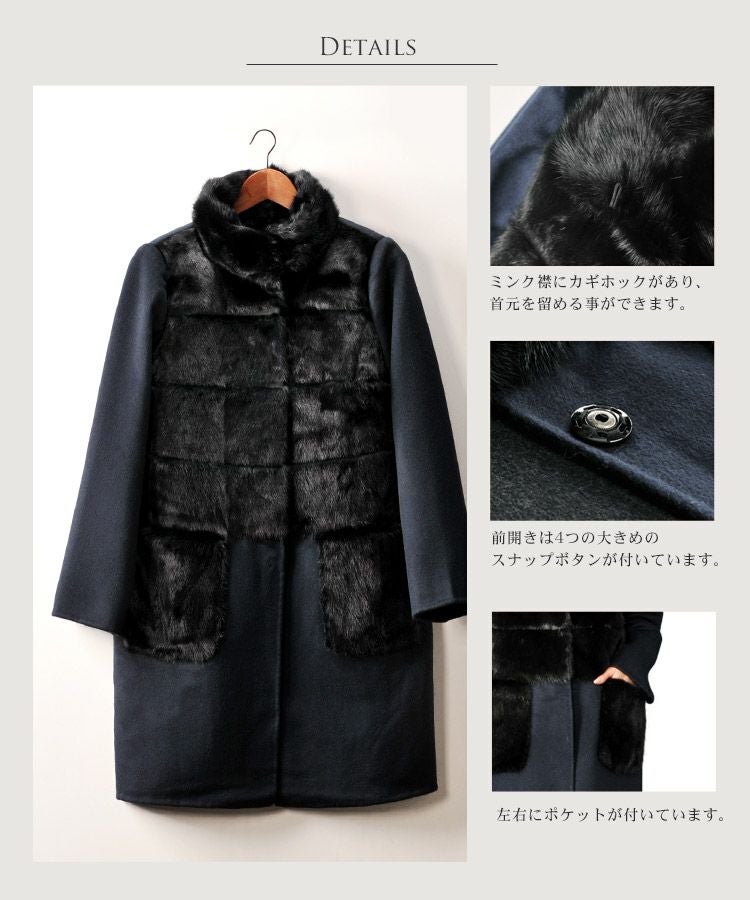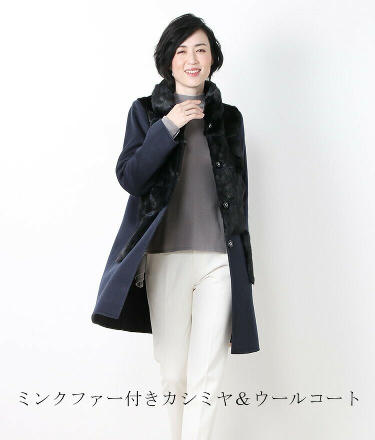 ミンク & カシミヤ 混 ウール コート 一枚仕立て ファーポケット付き 7F