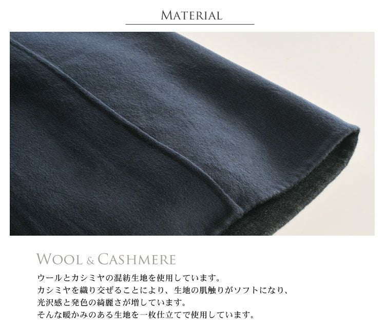 カシミヤをブレンドしたウールの一枚仕立てで仕立てたコートです。