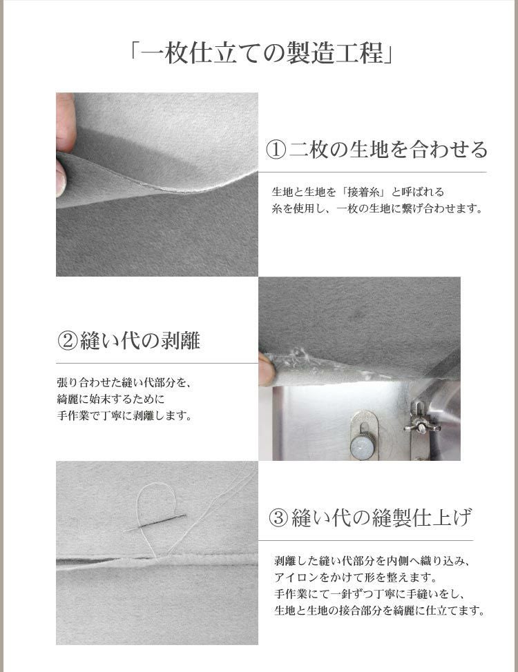 ベースの混紡生地はカシミヤを織り交ぜてソフトな肌触りと発色の良さを増しています。