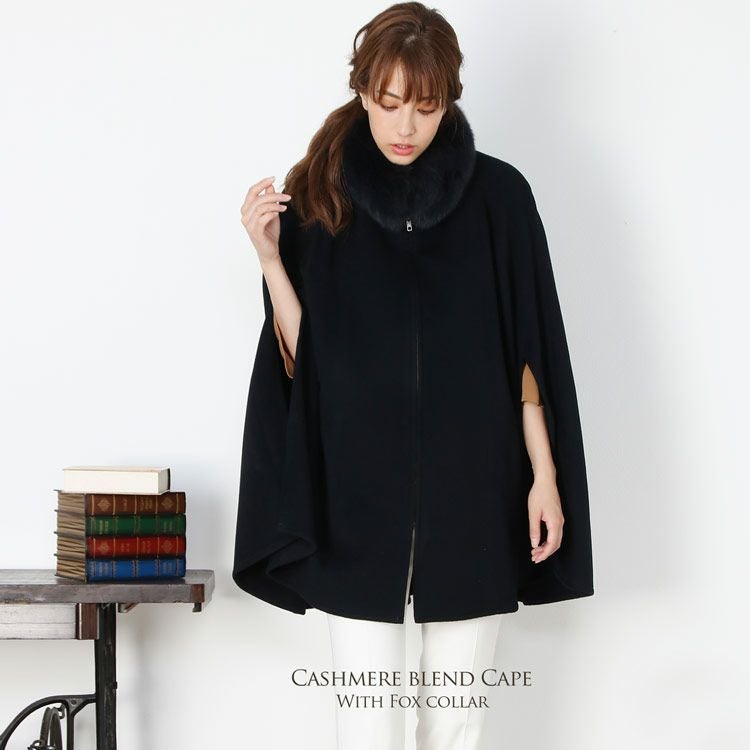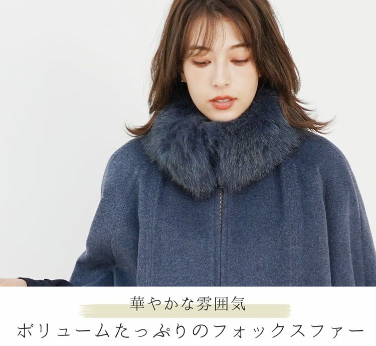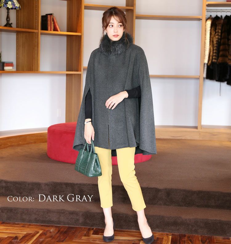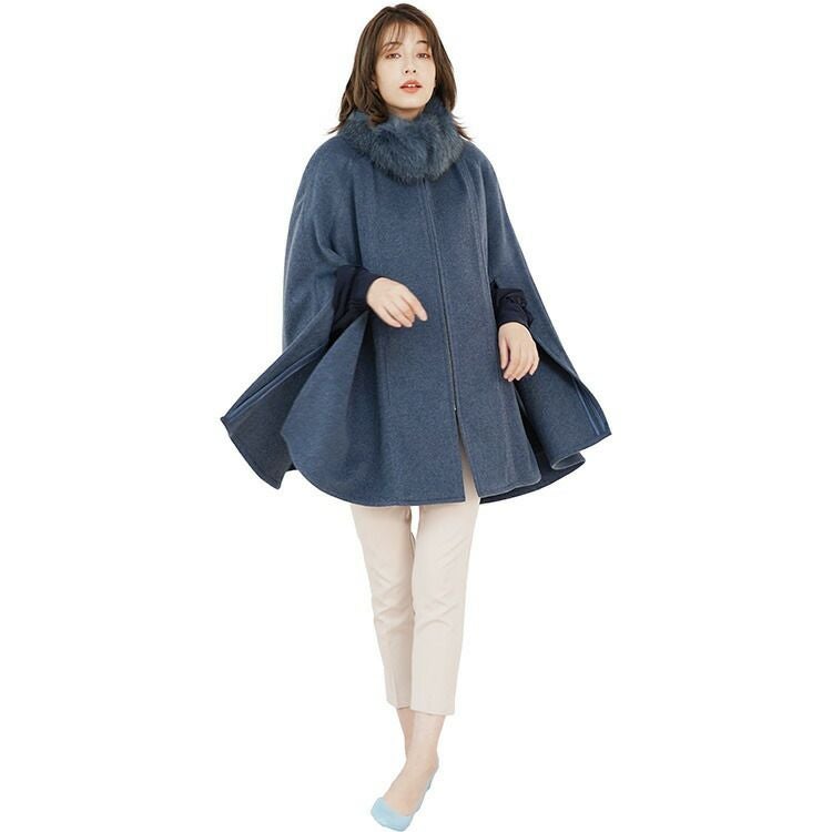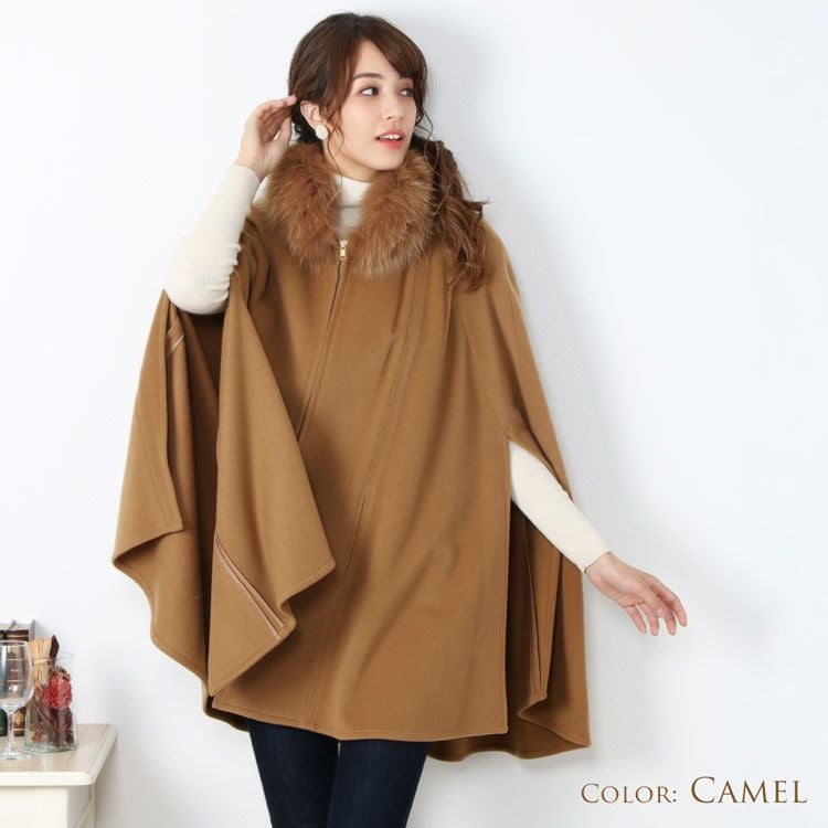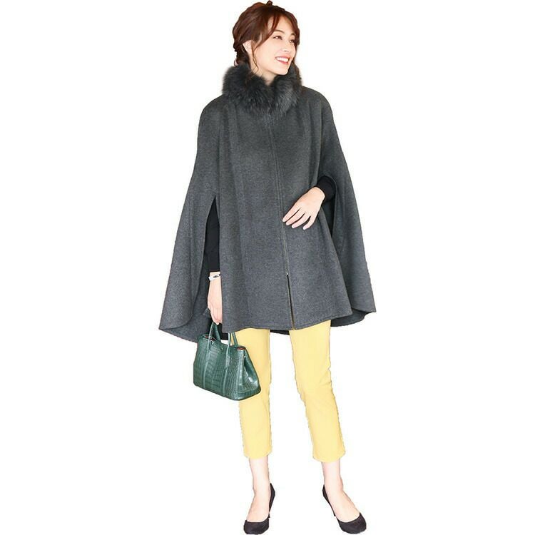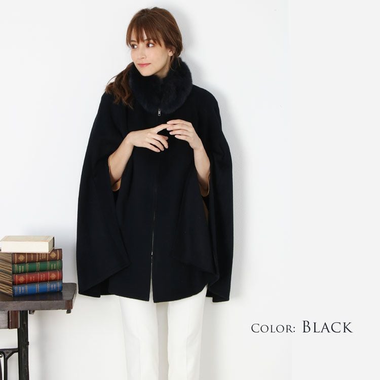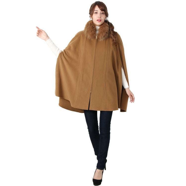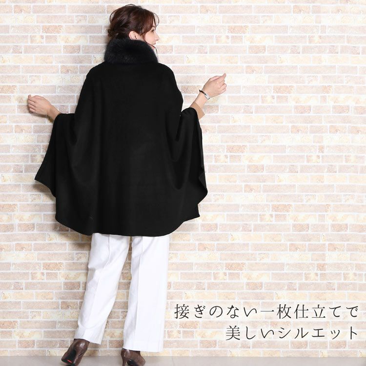 | 商品名:ウール & カシミヤ ケープ フォックス ファー 襟付き レディース |