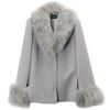 ブランド カシミヤ ブレンド ウール ジャケット レディース フォックス ファー トリミング 着丈66cm ライトグレー/ブルージーン/ブラック M/L テーラード プレゼント ギフト