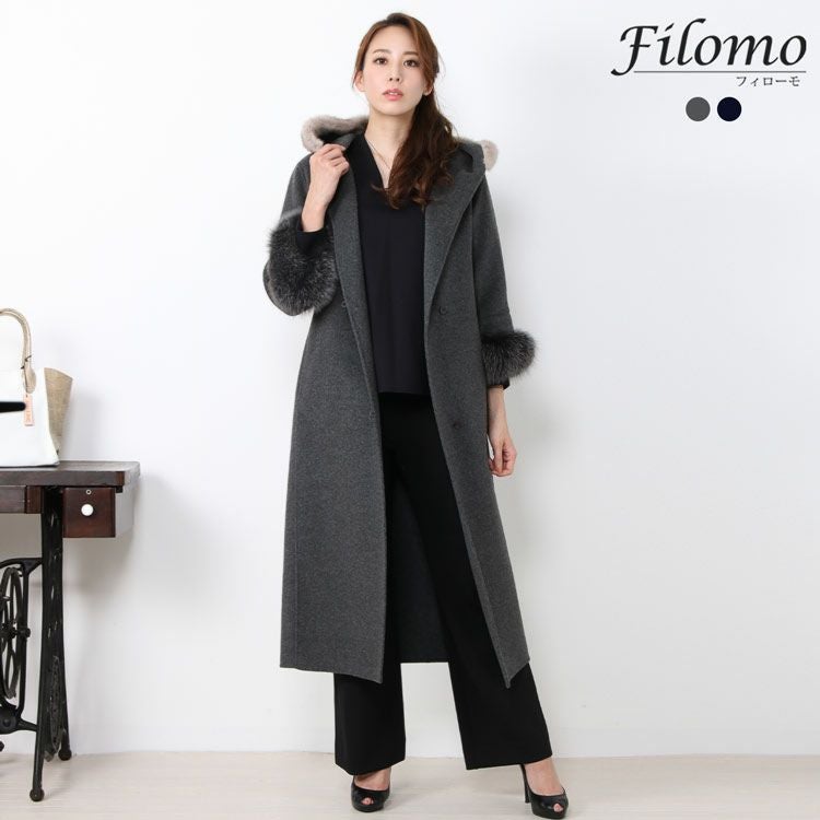 Filomo カシミヤブレンド ロングコート フード付き ミンク&フォックスファートリミング 7F
