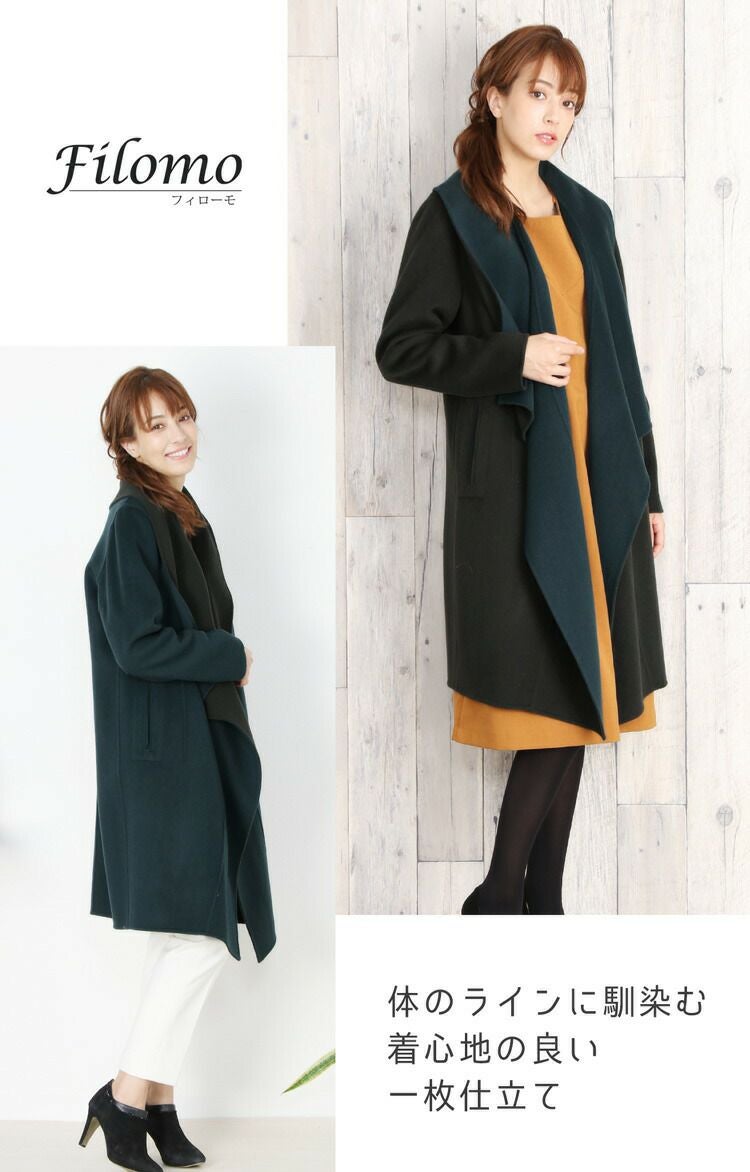 Filomo カシミヤ ブレンド ウール ラップ コート リバーシブル バイカラー ダブルフェイス レディース 7F