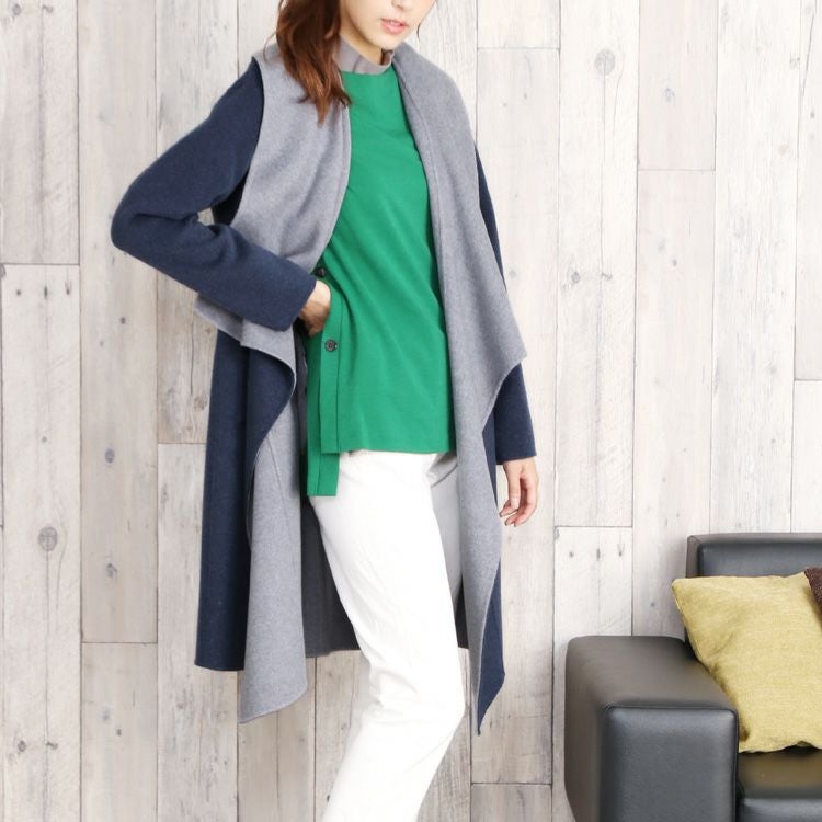 カシミヤ ブレンド ウール ラップ コート レディース リバーシブル バイカラー ダブルフェイス ネイビー×グレー/オリーブ×フォレスト プレゼント ギフト 春 秋 冬 ギフト