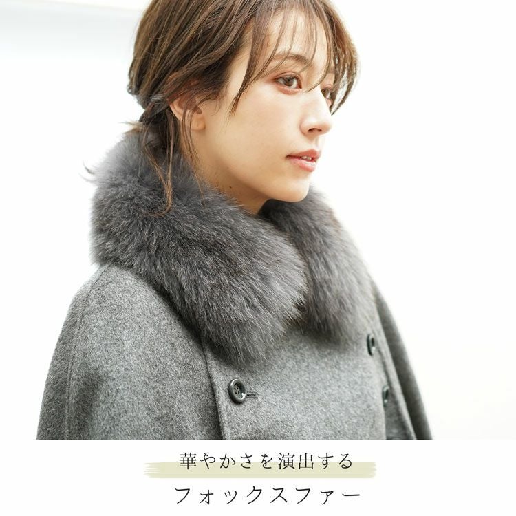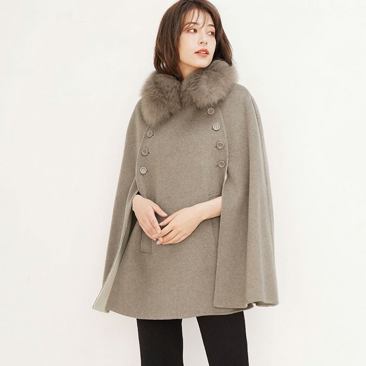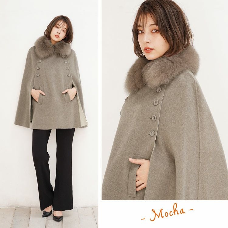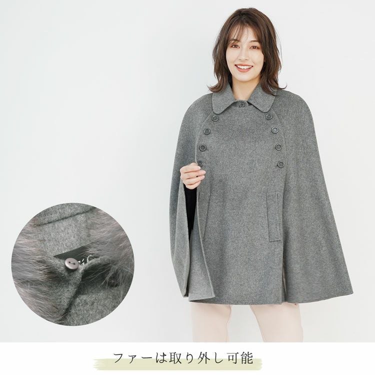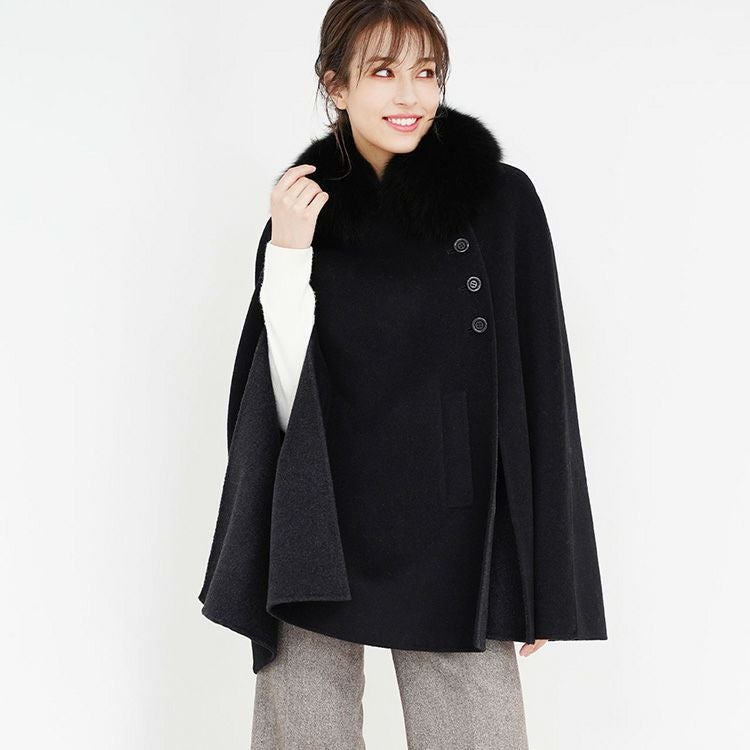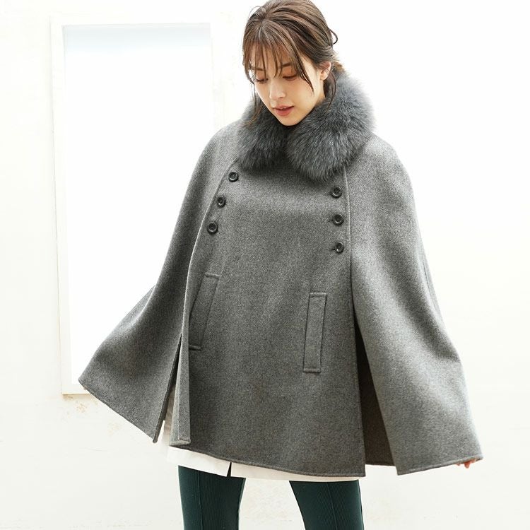 | 商品名:カシミヤ ブレンド ウール ダブルフェイス ケープ フォックストリミング |