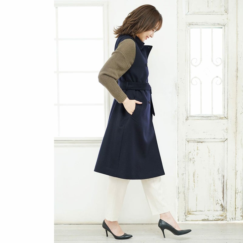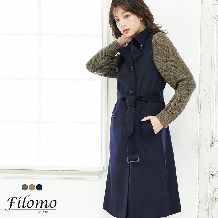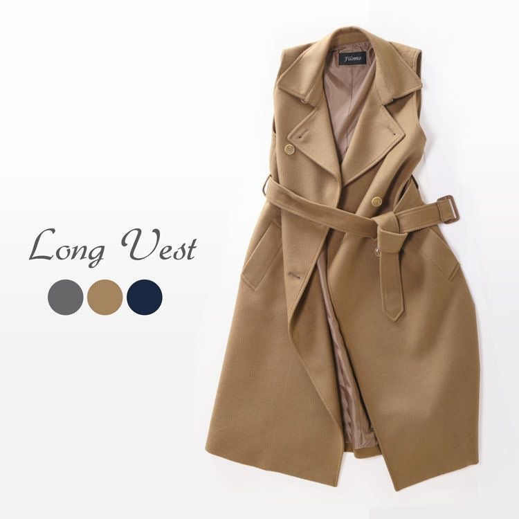 カシミヤ混 ウール ロング ベスト ダブル filomo ベルト 軽量 きれいめ ファッション トップス ジレ ロングジレ 大人 カジュアル 可愛い ギフト プレゼント