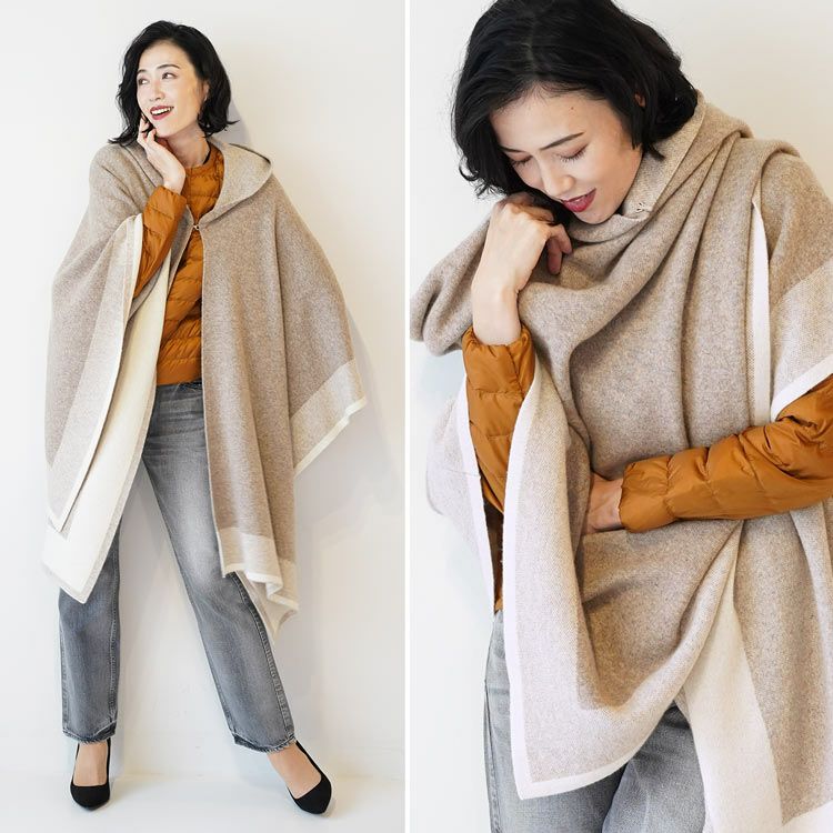 | 商品名:Filomo カシミヤ ブレンド ウール ニット ケープ フード付き |