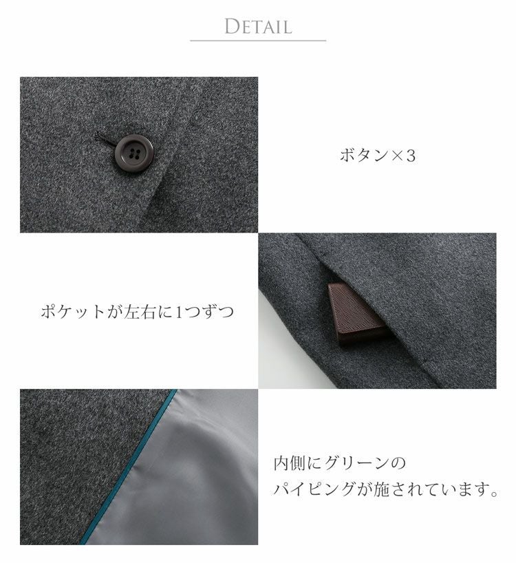 | 素材 | 表地:カシミヤ10%、ウール90% 裏地:ポリエステル100% |