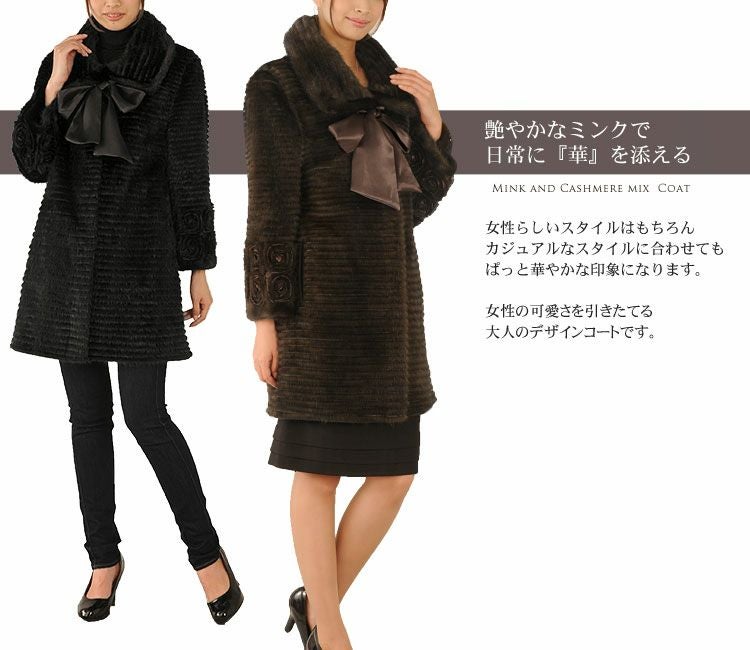 ミンク カシミヤ混 コート リボン フラワー デザイン(No.104142) |