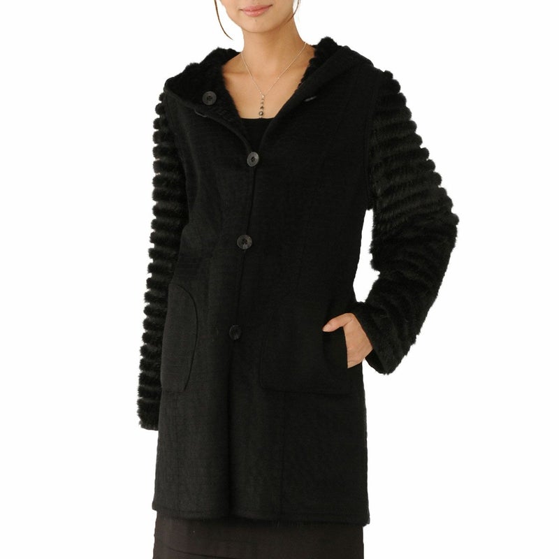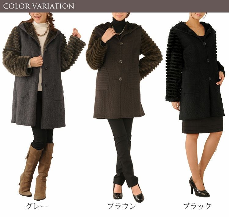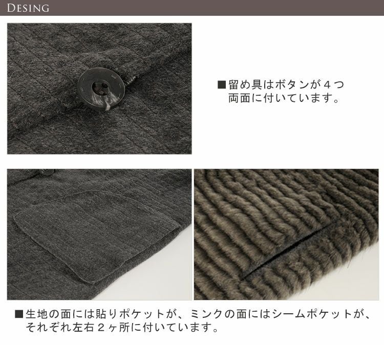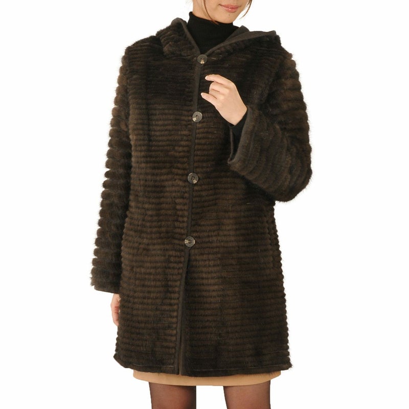 ミンク カシミヤ混 リバーシブル コート フード付き(No.104147) |