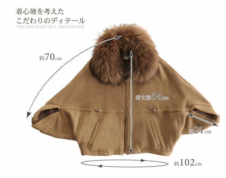 | 商品名:カシミヤ混ニット ケープジャケット ラクーントリミング ドルマン袖 |