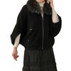 ボリュームのあるラクーンをトリミングした、ケープジャケットです。