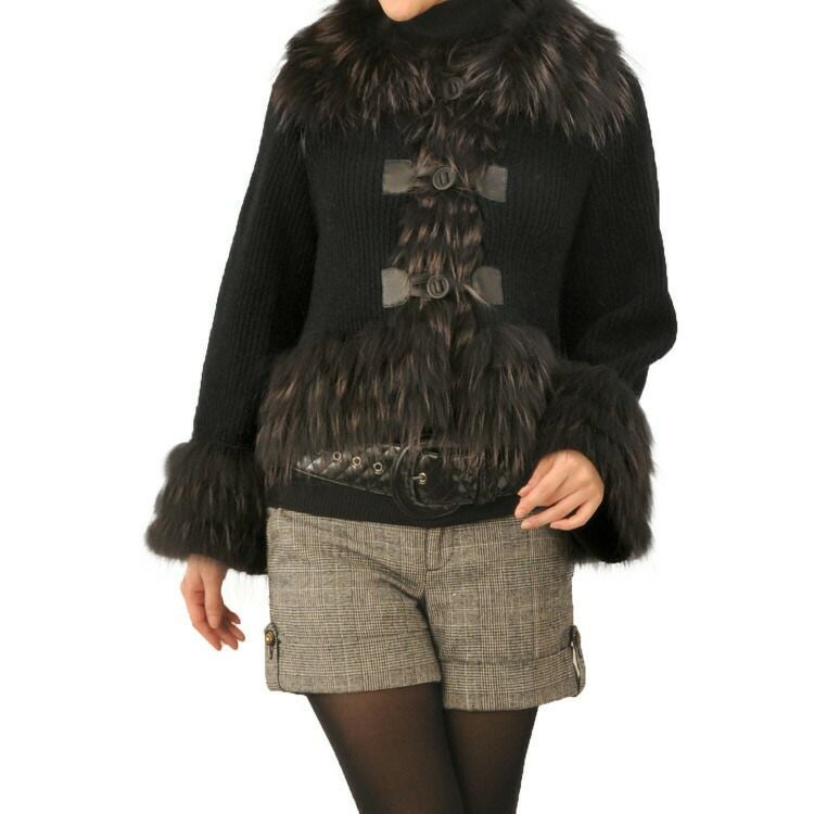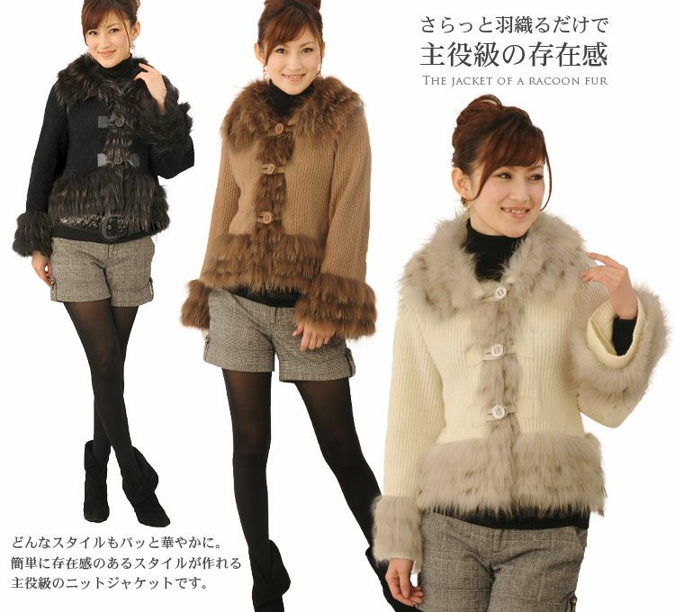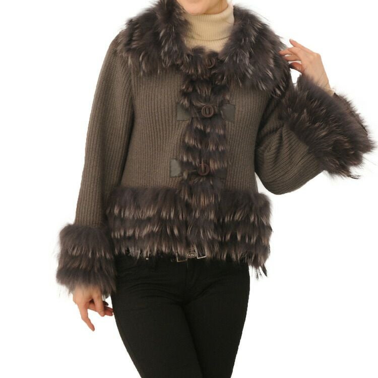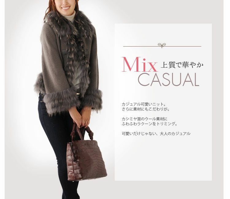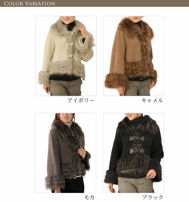 ニット ジャケット カシミヤ混 ラクーン トリミング 7F