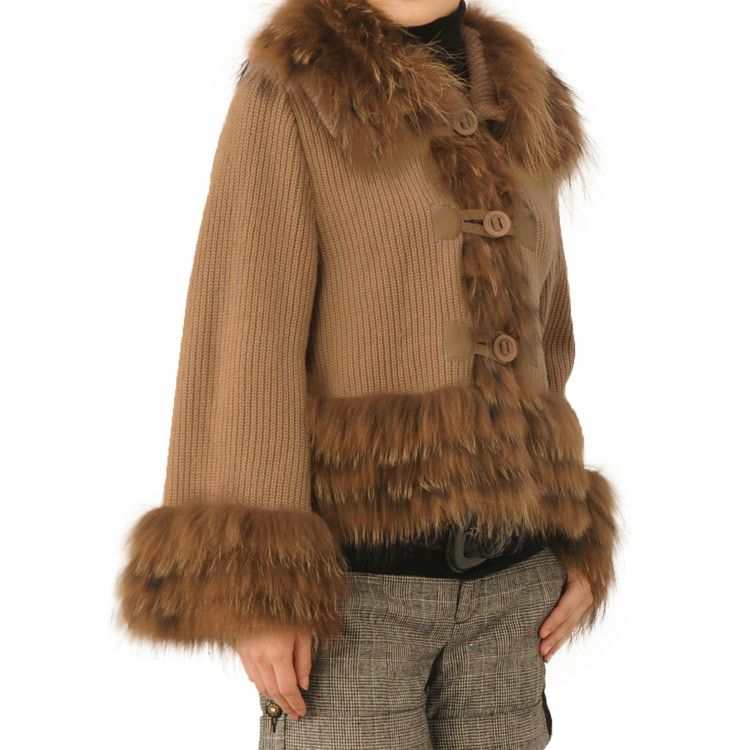 ニット ジャケット カシミヤ混 ラクーン トリミング(No.6780) |