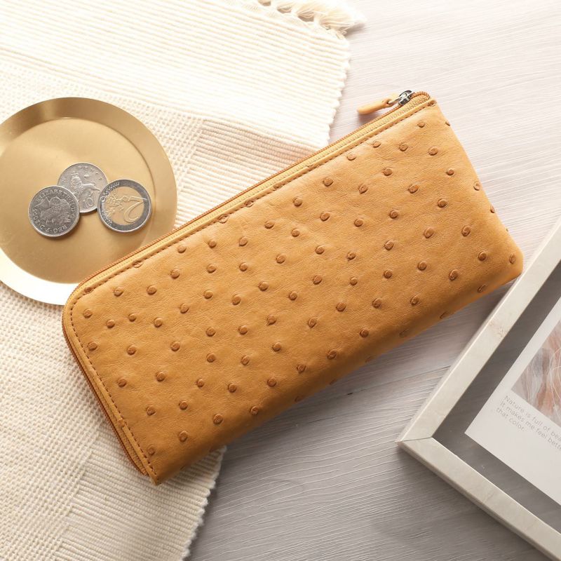 ※キーワード:オーストリッチ財布 婦人財布 女性 薄型財布 軽量 軽い wallet 本革財布 レディース長財布 ダチョウ