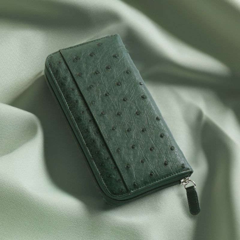 柔らかくて丈夫な本革、オーストリッチをハーフポイントで使用した長財布です。