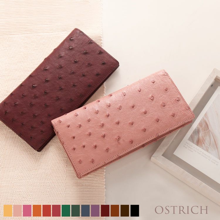 オーストリッチ 長財布 日本製 フルポイント 薄型 軽量 無双 紙幣入れ 束入れ 二つ折り 束入れ 紙幣入れ ファスナーポケット付き/ファスナーポケットなし レディース スリム 薄い 本革 女性 プレゼント ギフト (9068r)